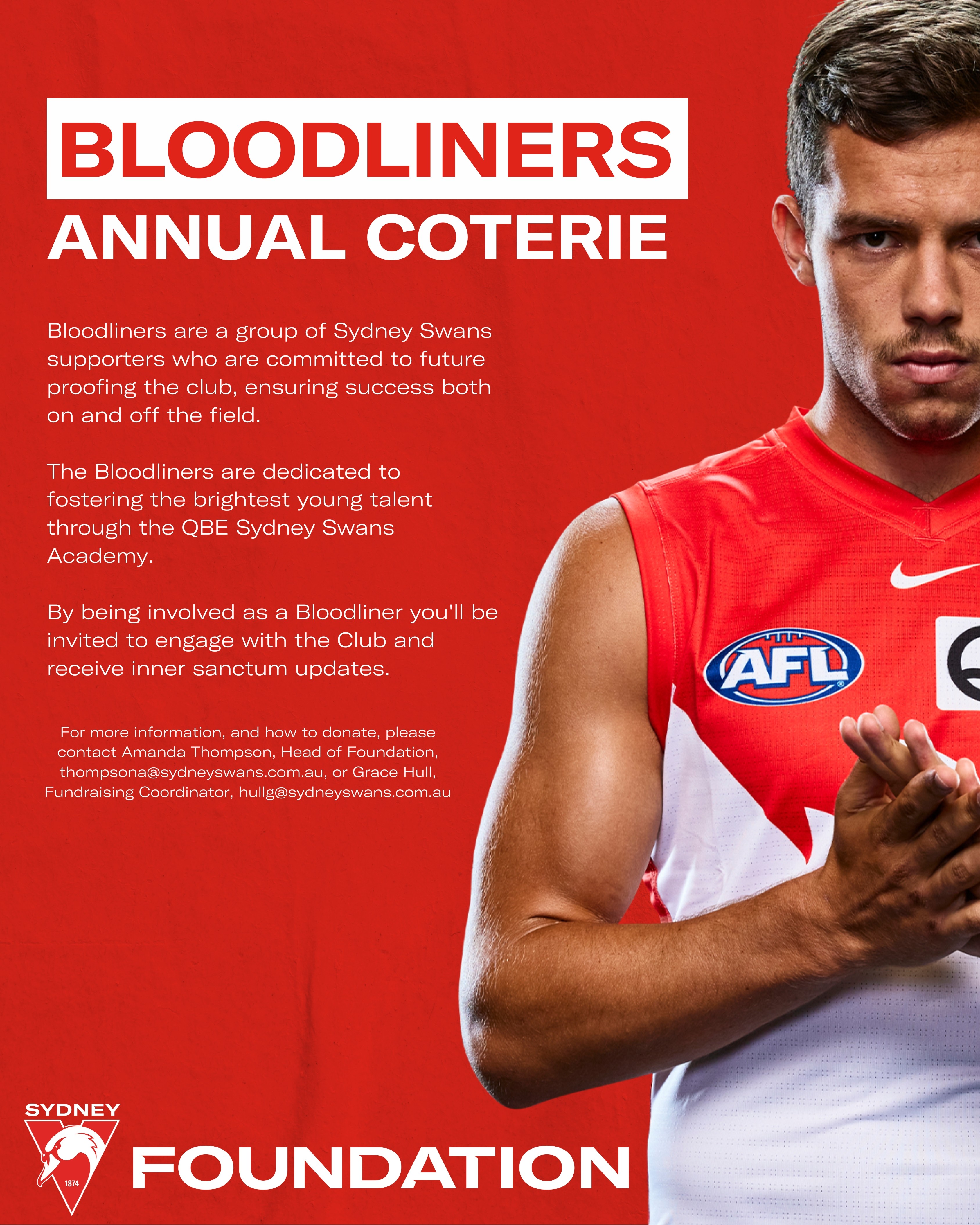 To discuss your intentions in confidence and to find out more information, please contact the foundation on foundation@sydneyswans.com.au